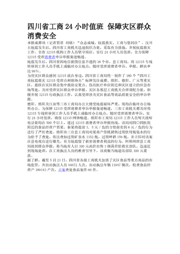 四川省工商24小時(shí)值班 保障災(zāi)區(qū)群眾消費(fèi)安全