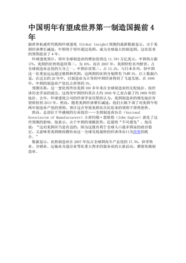 中國明年有望成世界第一制造國提前4年(17.73KB)