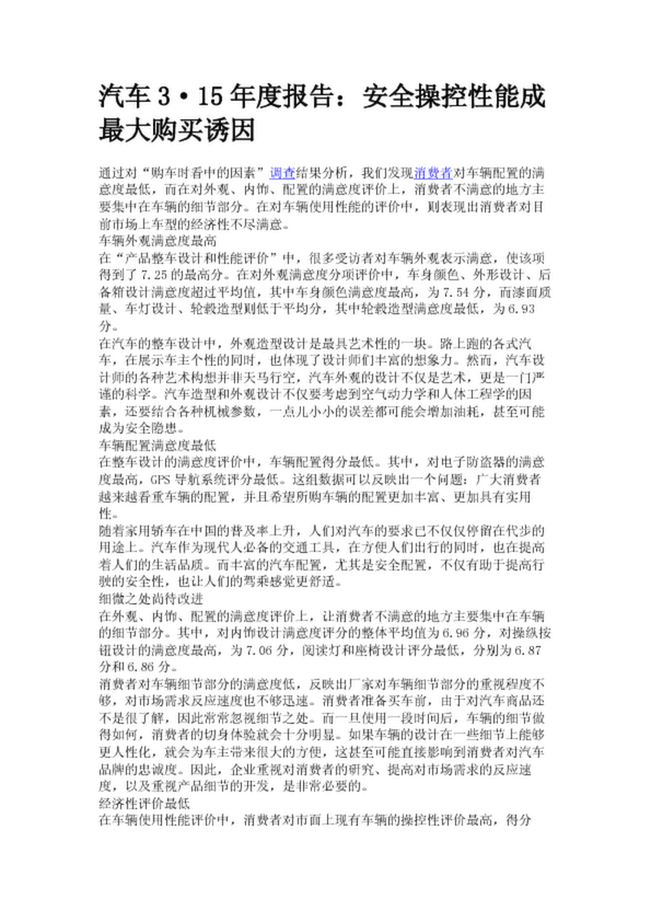 汽車(chē)3·15年度報(bào)告:安全操控性能成最大購(gòu)買(mǎi)誘因