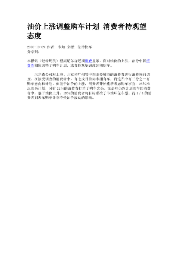 油價(jià)上漲調(diào)整購車計(jì)劃 消費(fèi)者持觀望態(tài)度