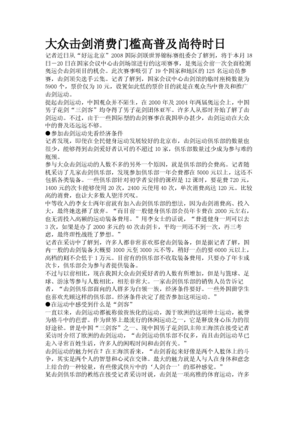 大眾擊劍消費(fèi)門檻高普及尚待時(shí)日(24.50KB)