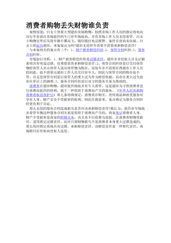 消費(fèi)者購物丟失財物誰負(fù)責(zé)