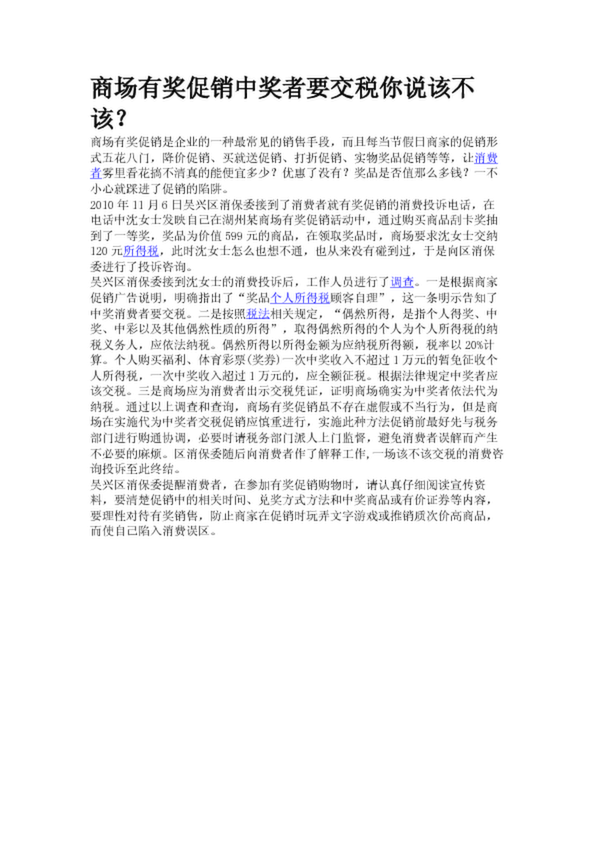 商場有獎(jiǎng)促銷中獎(jiǎng)?wù)咭欢惸阏f該不該?