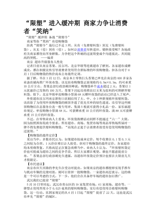 “限塑”進(jìn)入緩沖期 商家力爭讓消費(fèi)者“笑納”