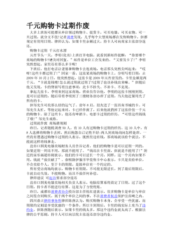 千元購物卡過期作廢