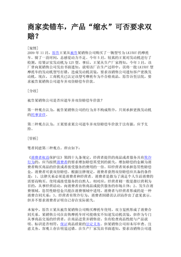 商家賣錯車,產(chǎn)品“縮水”可否要求雙賠?