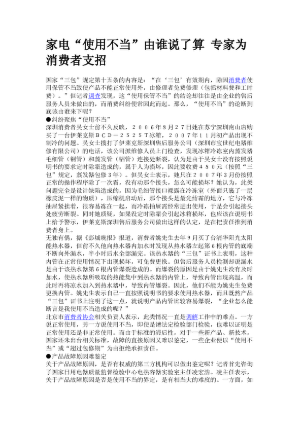 家電“使用不當(dāng)”由誰說了算 專家為消費者支招