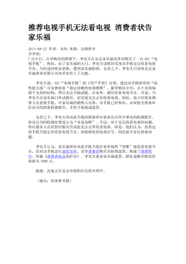 推薦電視手機無法看電視 消費者狀告家樂福(3.32KB)