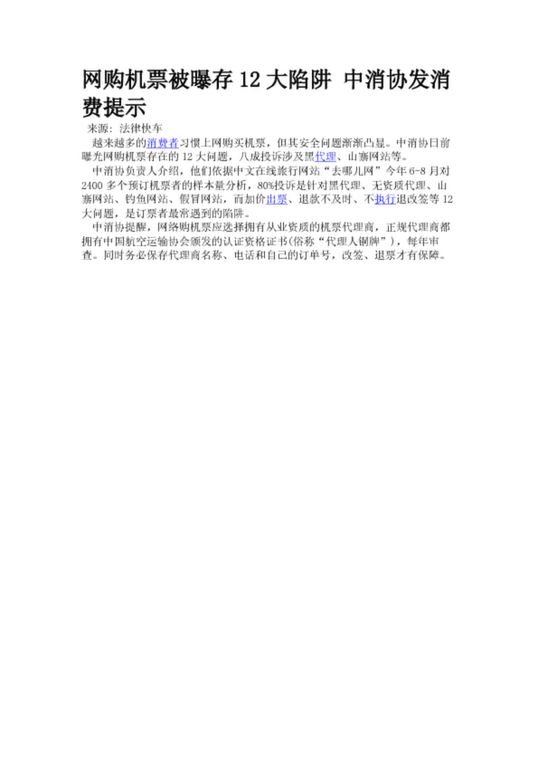 網(wǎng)購機(jī)票被曝存12大陷阱 中消協(xié)發(fā)消費(fèi)提示