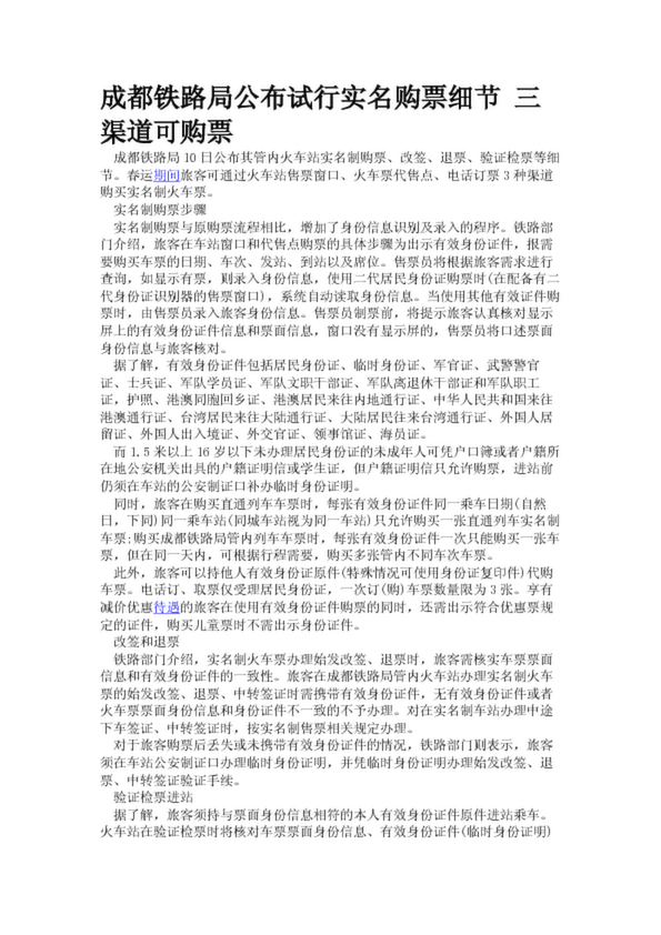 成都鐵路局公布試行實(shí)名購(gòu)票細(xì)節(jié) 三渠道可購(gòu)票