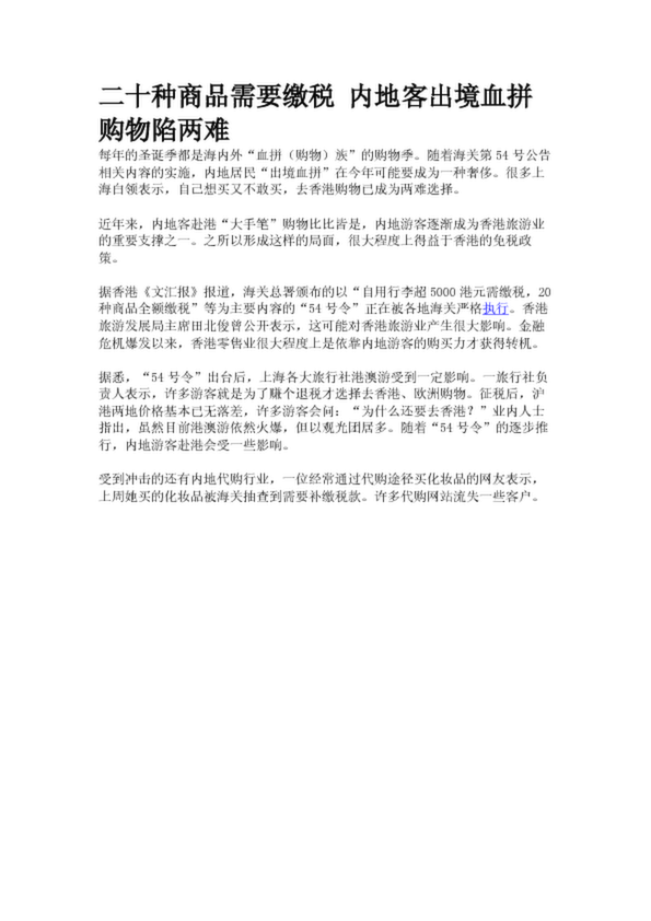二十種商品需要繳稅 內(nèi)地客出境血拼購物陷兩難(17.75KB)