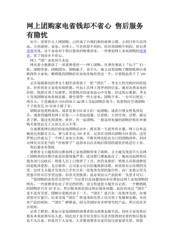 網(wǎng)上團購家電省錢卻不省心 售后服務有隱憂