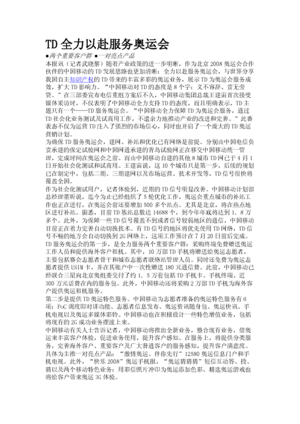 TD全力以赴服務(wù)奧運(yùn)會