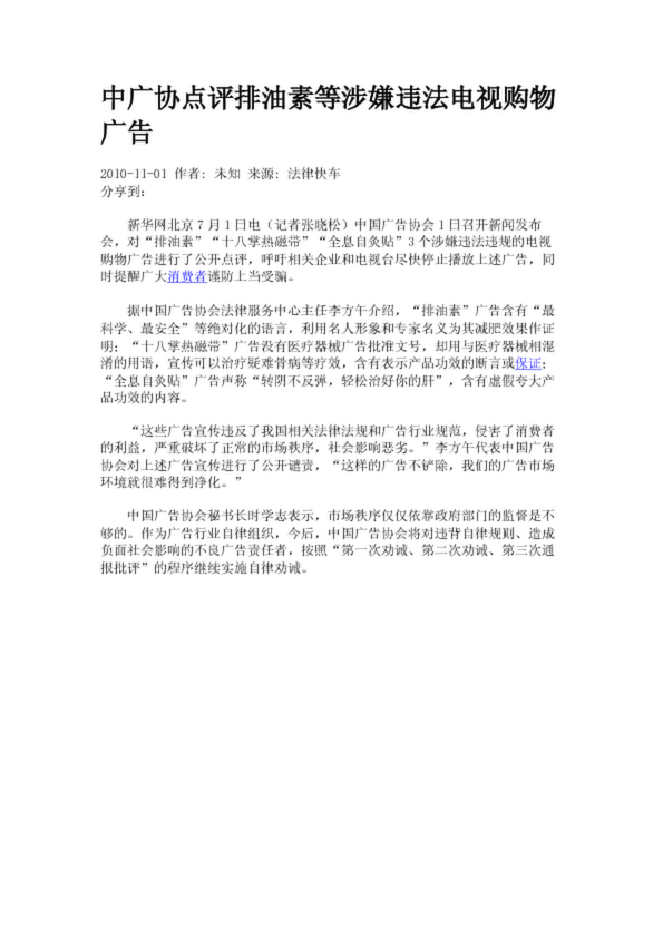 中廣協(xié)點(diǎn)評(píng)排油素等涉嫌違法電視購(gòu)物廣告