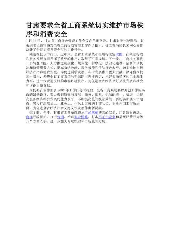 甘肅要求全省工商系統(tǒng)切實(shí)維護(hù)市場秩序和消費(fèi)安全