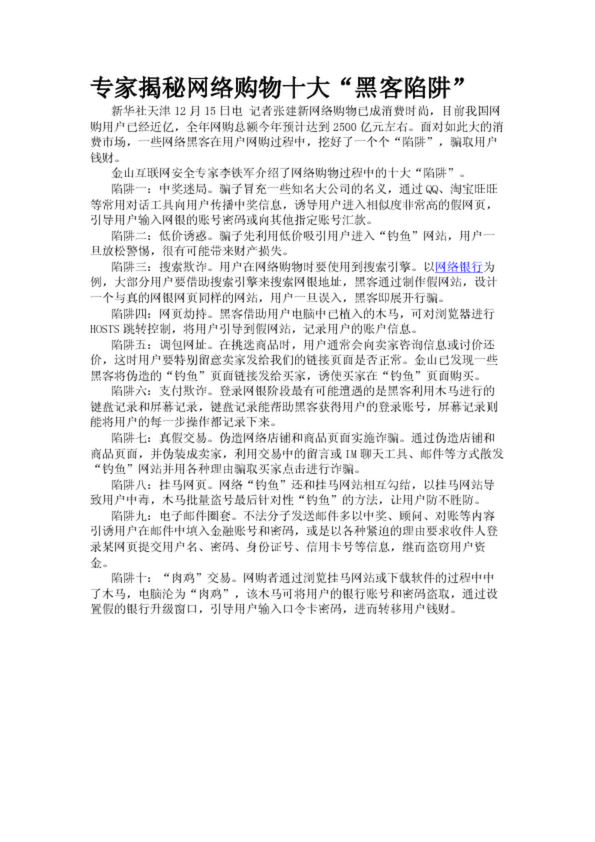 專家揭秘網(wǎng)絡(luò)購物十大“黑客陷阱”