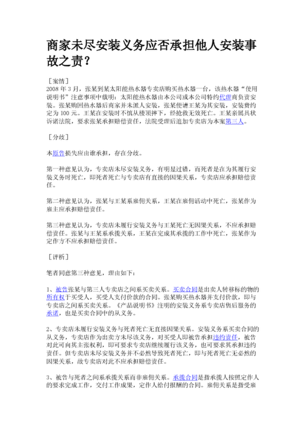 商家未盡安裝義務應否承擔他人安裝事故之責?