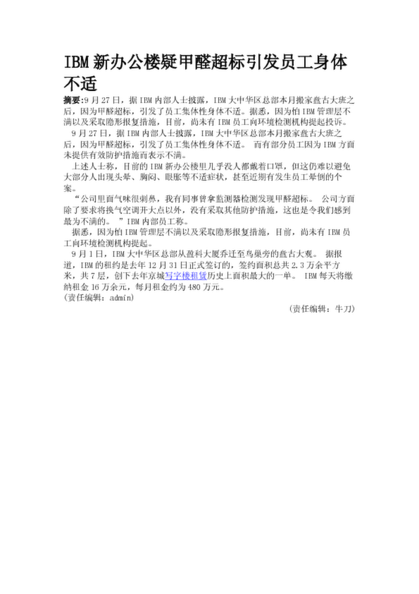 IBM新辦公樓疑甲醛超標(biāo)引發(fā)員工身體不適