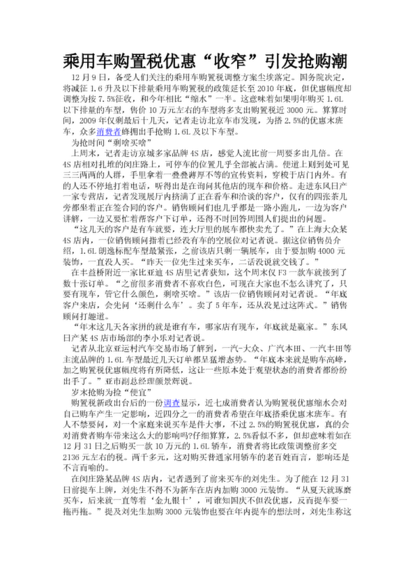 乘用車購置稅優(yōu)惠“收窄”引發(fā)搶購潮