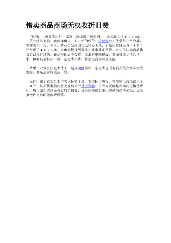 錯(cuò)賣商品商場(chǎng)無權(quán)收折舊費(fèi)