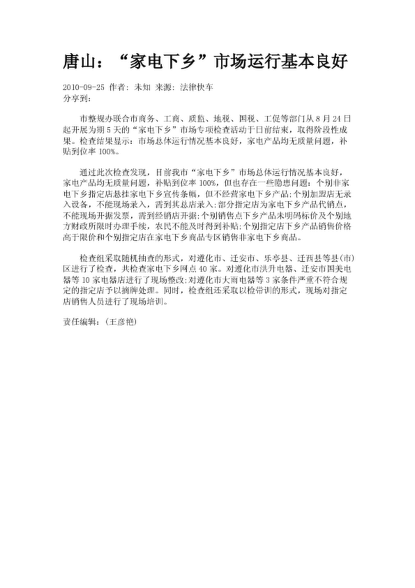 唐山:“家電下鄉(xiāng)”市場運行基本良好