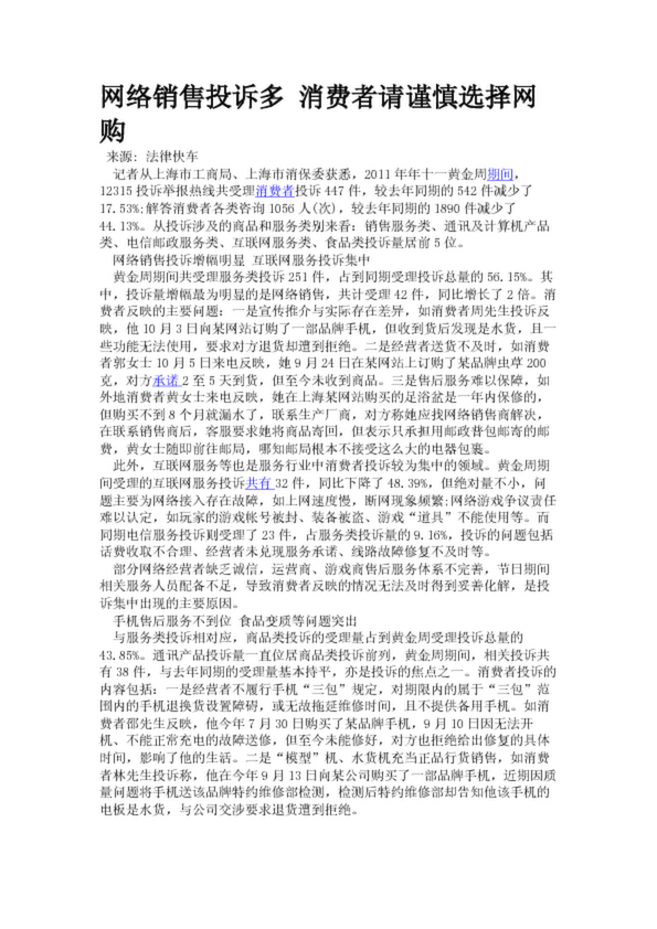 網(wǎng)絡(luò)銷售投訴多 消費(fèi)者請謹(jǐn)慎選擇網(wǎng)購
