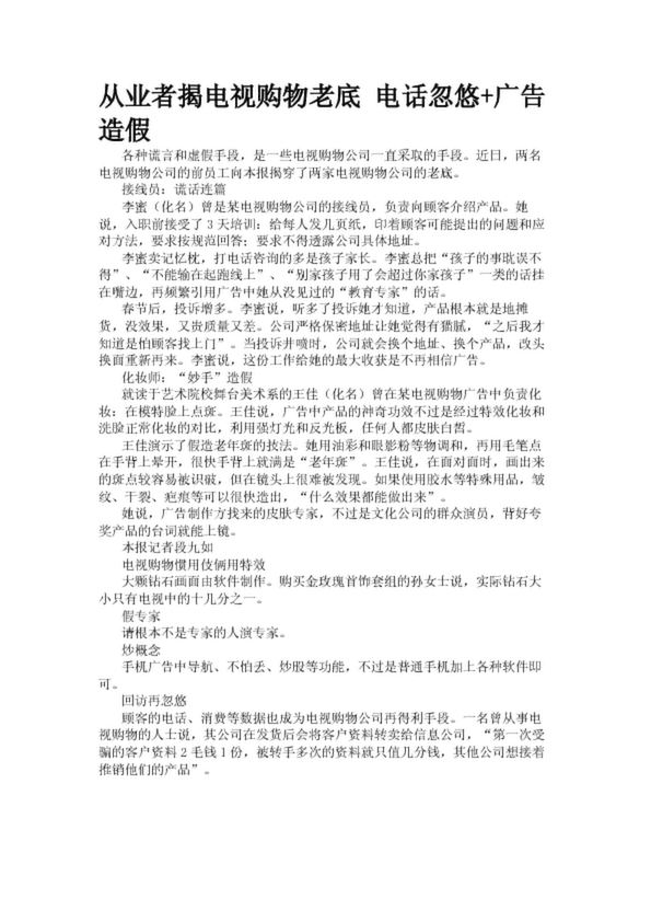 從業(yè)者揭電視購物老底 電話忽悠+廣告造假