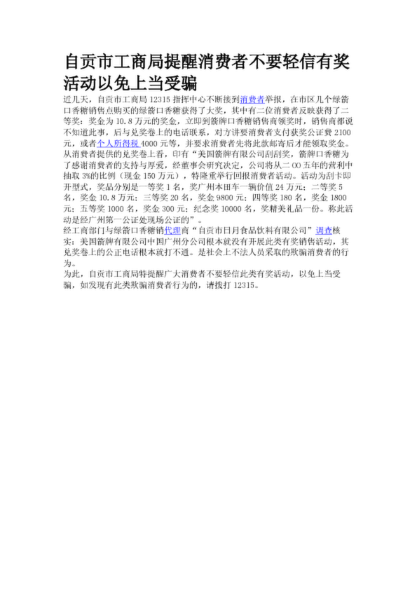 自貢市工商局提醒消費者不要輕信有獎活動以免上當受騙