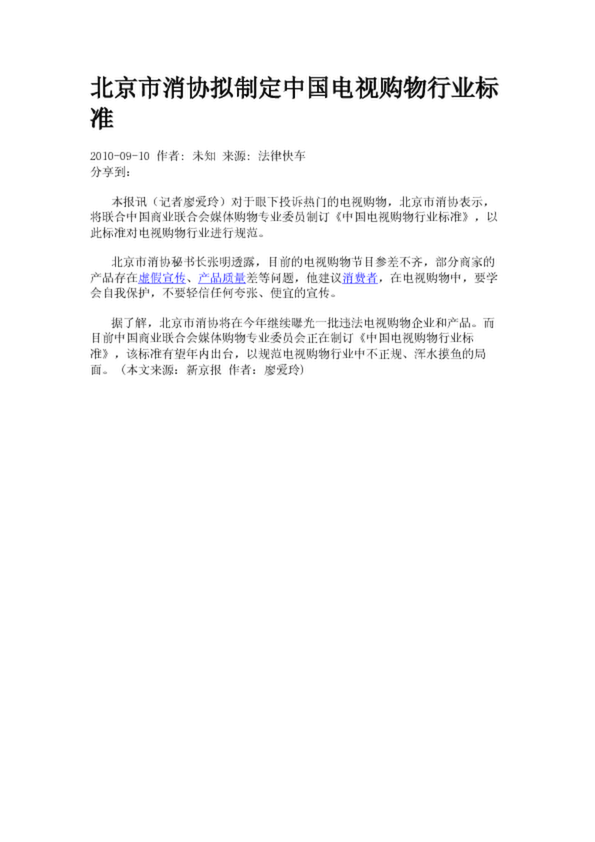 北京市消協(xié)擬制定中國(guó)電視購物行業(yè)標(biāo)準(zhǔn)