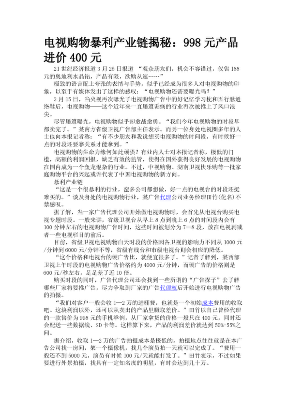 電視購(gòu)物暴利產(chǎn)業(yè)鏈揭秘:998元產(chǎn)品進(jìn)價(jià)400元(28.37KB)