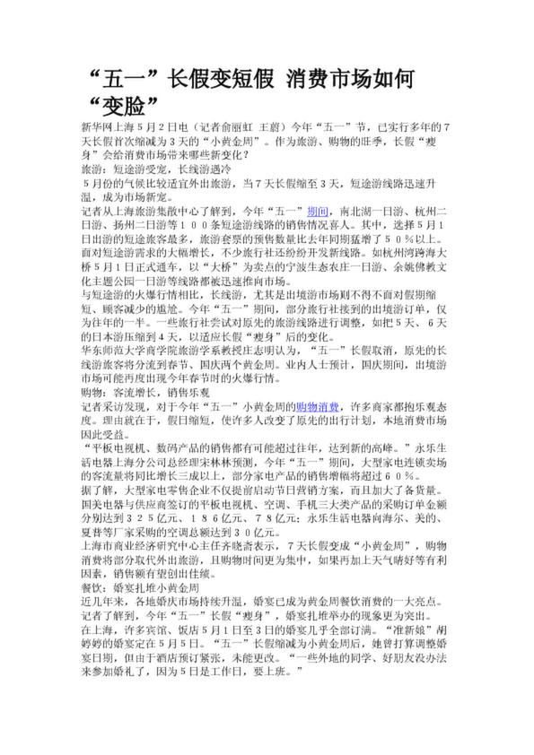 “五一”長假變短假 消費市場如何“變臉”