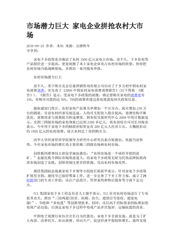 市場(chǎng)潛力巨大 家電企業(yè)拼搶農(nóng)村大市場(chǎng)