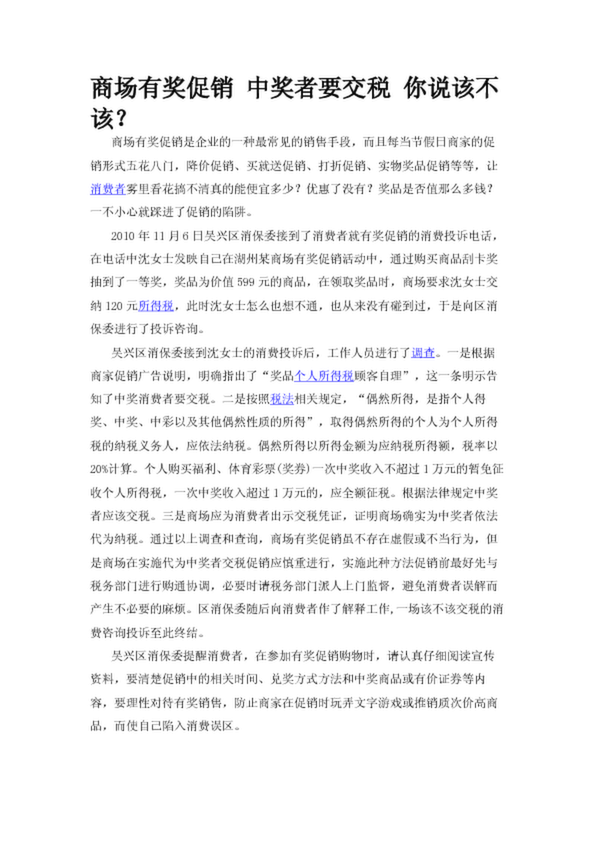 商場有獎促銷 中獎?wù)咭欢?你說該不該?