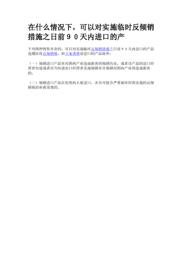 在什么情況下,可以對(duì)實(shí)施臨時(shí)反傾銷措施之日前90天內(nèi)進(jìn)口的產(chǎn)(17.37KB)