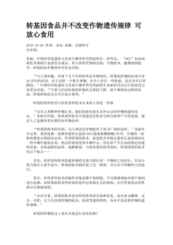 轉(zhuǎn)基因食品并不改變作物遺傳規(guī)律 可放心食用