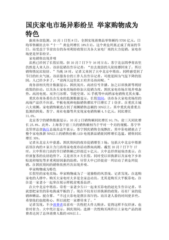 國慶家電市場異彩紛呈 舉家購物成為特色
