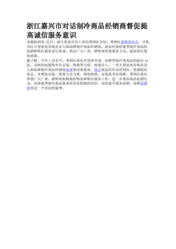 浙江嘉興市對話制冷商品經(jīng)銷商督促提高誠信服務(wù)意識