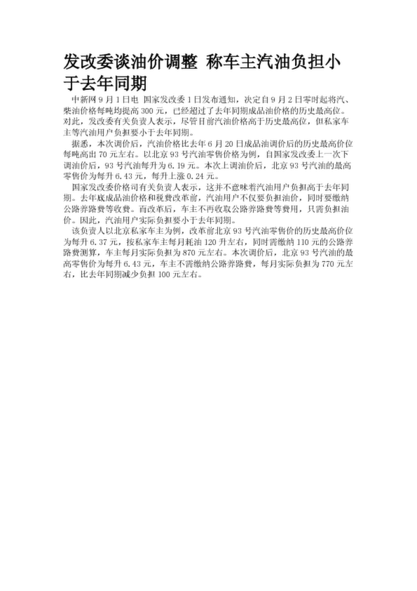 發(fā)改委談油價調(diào)整 稱車主汽油負(fù)擔(dān)小于去年同期