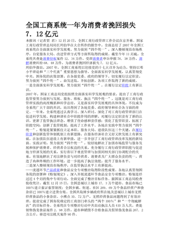 全國工商系統(tǒng)一年為消費(fèi)者挽回?fù)p失7.12億元