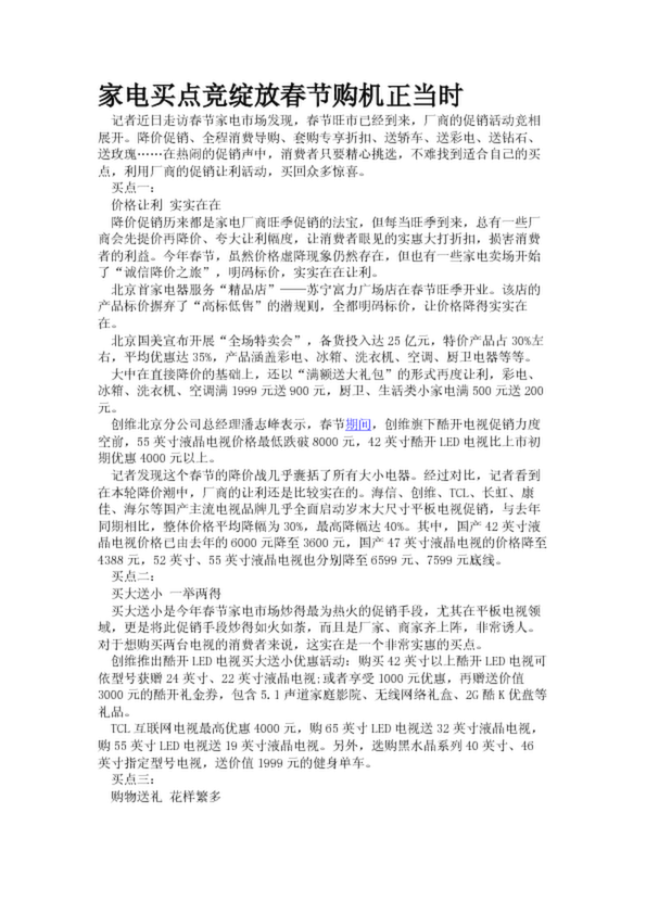 家電買點(diǎn)競(jìng)綻放春節(jié)購(gòu)機(jī)正當(dāng)時(shí)(37.36KB)