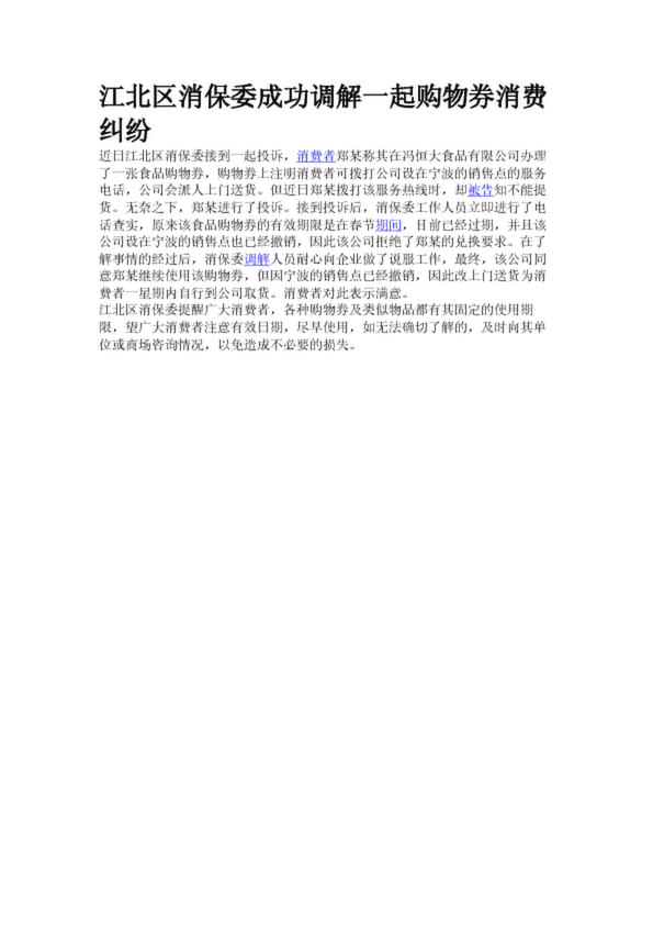 江北區(qū)消保委成功調(diào)解一起購物券消費(fèi)糾紛