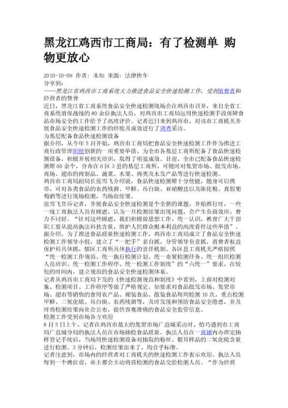 黑龍江雞西市工商局:有了檢測(cè)單 購(gòu)物更放心