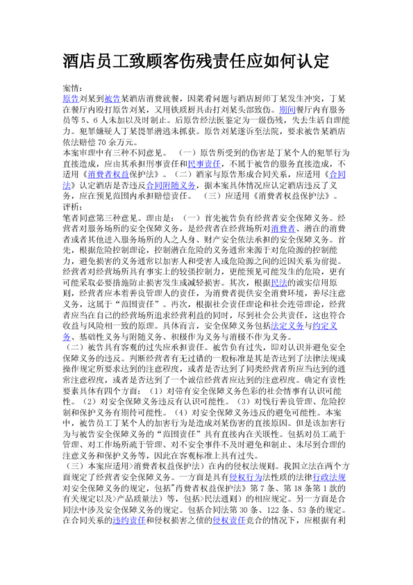 酒店員工致顧客傷殘責(zé)任應(yīng)如何認(rèn)定