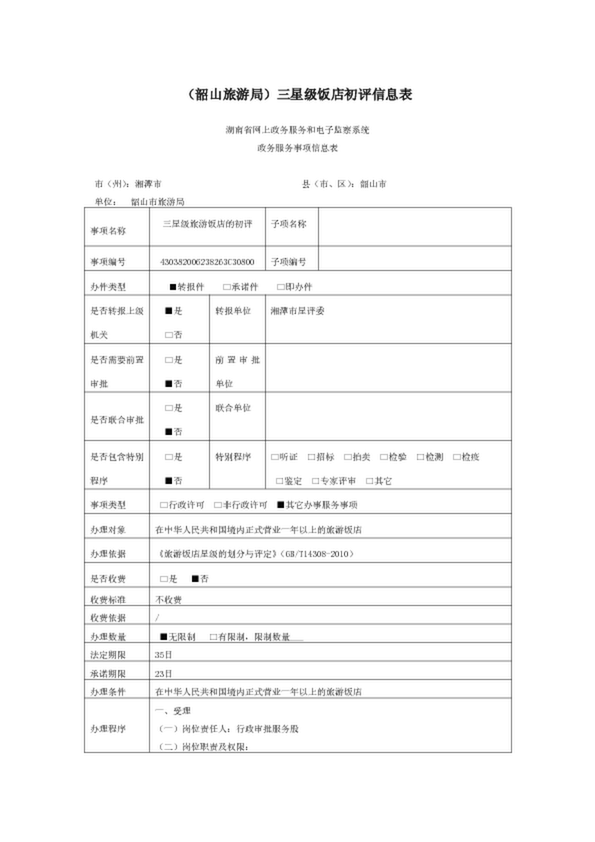 (韶山旅游局)1A、2A等級旅游區(qū)(點)評定及復核信息表