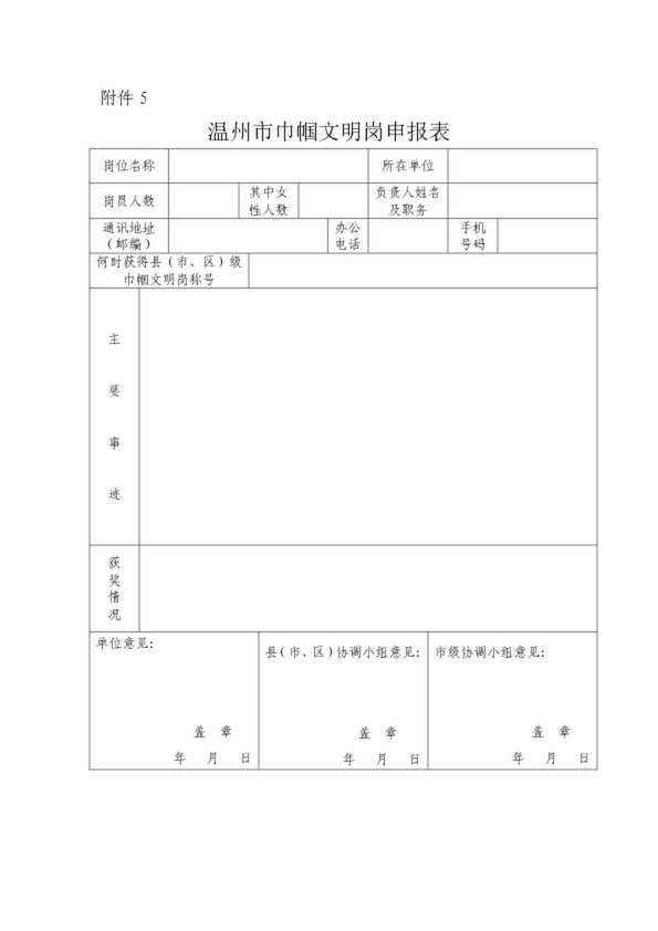 溫州市巾幗文明崗申報(bào)表