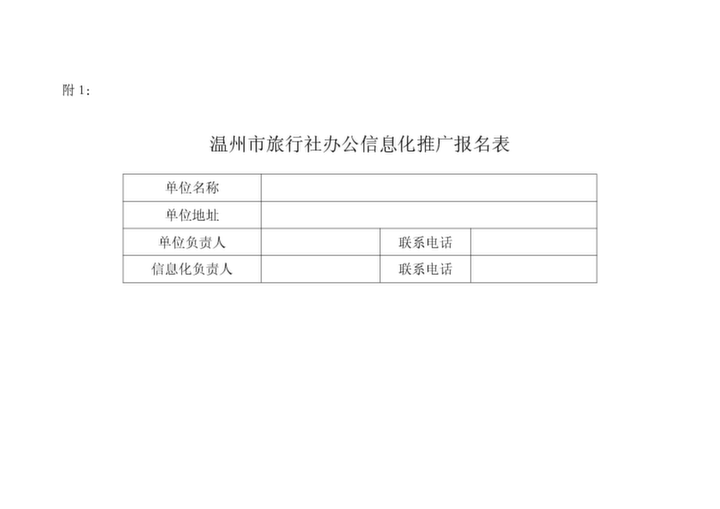 溫州市旅行社辦公信息化推廣報名表