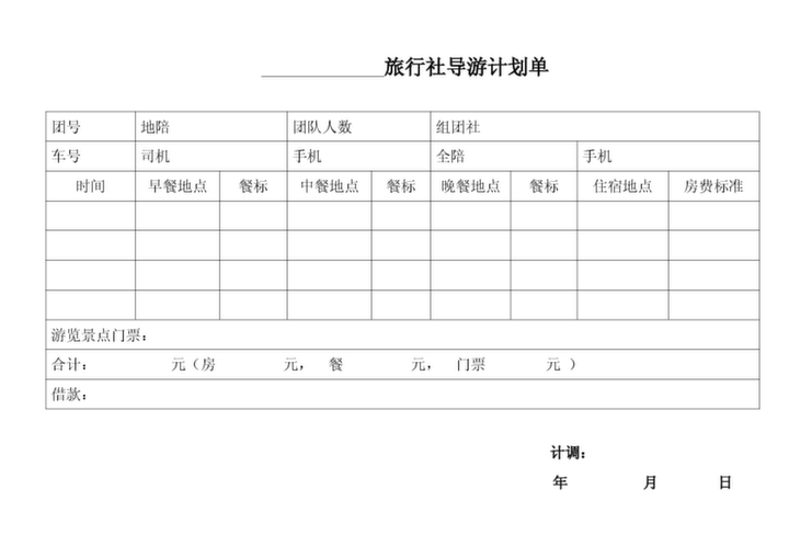 旅行社計(jì)調(diào)-導(dǎo)游計(jì)劃單