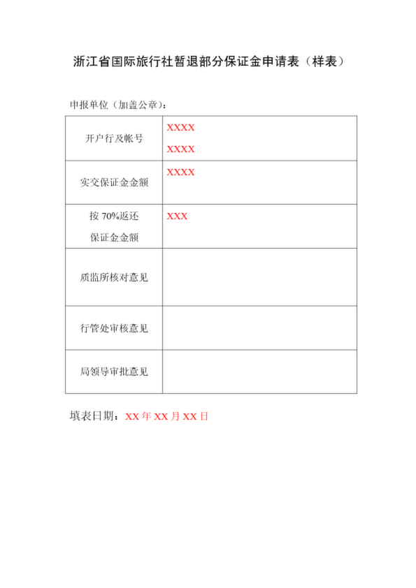 浙江省旅行社暫退部分保證金申請表(樣表)