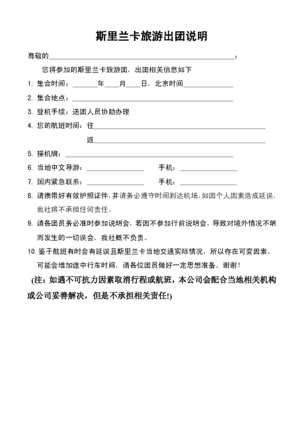 斯里蘭卡出團通知