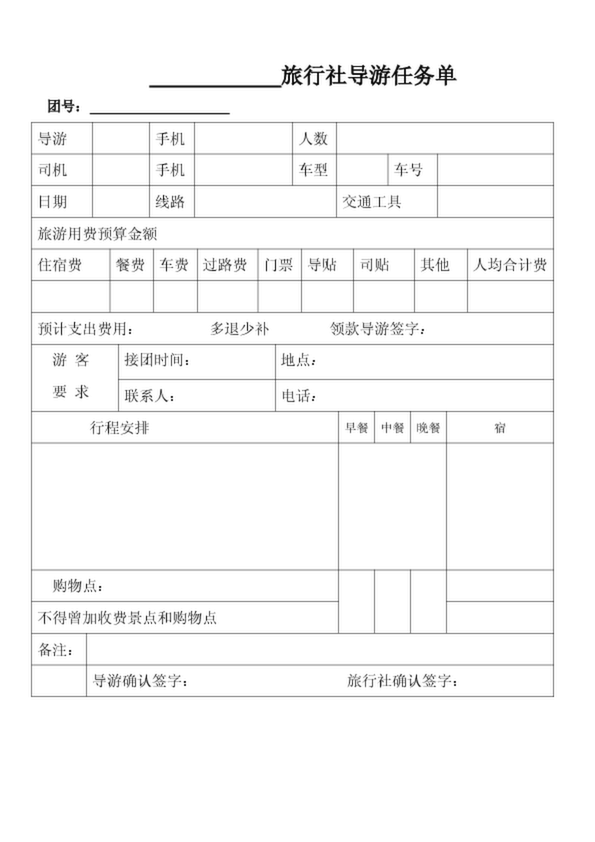 接團(tuán)行程計(jì)劃單(電子行程單)